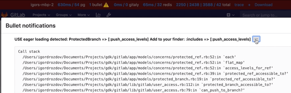 ENABLE_BULLETenvironment variable to a non-empty value before starting GitLab:ENABLE_BULLET=true bundle exec rails s