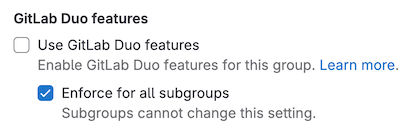 NOTE: In GitLab 17.7, you cannot turn off GitLab Duo for groups or subgroups on GitLab Self-Managed, or for subgroups on GitLab.com.